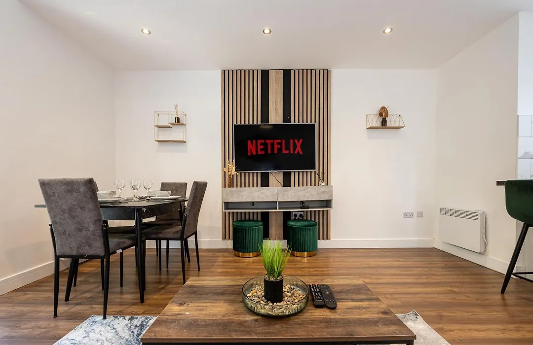 Luxury 2 Bedroom Apartment In Chorlton Manchester, di 270 m², situato a una distanza di 3 km dal Giardino botanico Fletcher Moss, offre ai suoi ospiti Wi-Fi sia per affari che per piacere. La Galleria d'Arte di Manchester si trova a circa 15 minuti in auto e l'aeroporto di Manchester a 10 km dall'appartamento.